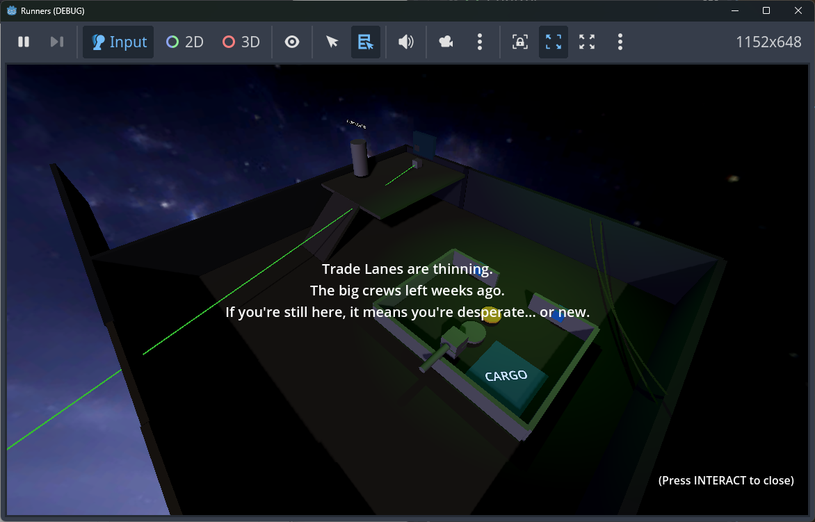 CylinderMeshso it reads as a wire rather than a single-pixel debug line. - The line is fully editor-driven; no runtime scripting or extra setup required.